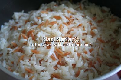Tencereye zeytinyağı, tereyağı konulacak ve orta ısıda ısıtılacak. Üzerine arpa şehriye konulacak ve 1.5 dakikayı geçmeyecek sürede (rengi değişinceye kadar) kavrulacak. Ardından pirinç ilave edilecek ve şeffaf bir görünüm alıncaya kadar (5 dakika) kavrulacak. Üzerine 1 su bardağı + 2 kahve fincanı kaynar su, 2 çay kaşığı tuz ilave edilecek ve pilavın tuzu karar hale getirilecek. Tencere yüksek ısıda 1 dakika kaynatılacak ve kapağı kapatılacak. Ocak ısısı en düşük ısı konumuna getirilecek. Saate bakılacak not edilecek. Tam 10 dakika bitiminde ocak söndürülecek. Tencerenin kapağı açılmadan pilav 15 dakika dinlendirilecek. Süre bitiminde karıştırılacak. Sonrası malum.