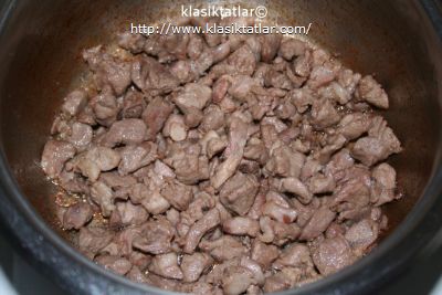 Tencereye 1 yemek kaşığı sıvı yağ konulacak ısıtılacak. Üzerine kuzu eti ilave edilecek ve normal ısıda kavurulacak. Tencerenin ortayerinden yer açılacak ve soğan kavrulacak. Üzerine 1 tatlı kaşığı un ilave edilecek düşük ısı da kokusu çıkıncaya kadar kavurulacak. Peşinden 2 su bardağı kaynar su, baharat torbası konulacak ve yüksek ısıda tencere kaynatılacak. Tencere kapağı kapatılacak, ocak ısısı en düşük ısı konumuna alınacak ve saate bakılacak bir yere not edilecek. Tam 40 dakika bitiminde tencere ocaktan alınacak, süzgeçten geçirilecek ve sosu ayrılacak. Baharat torbası kullanılmayacak atılacak.